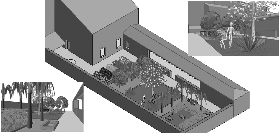 | Per entrare nell’universo del monastero medievale è bene ricordare le raccomandazioni della regola di San Benedetto, riferite alla necessaria presenza di acqua e di un hortus all’interno dell’insediamento monastico. Il concetto di Hortus conclusus viene ripreso e riproposto in chiave moderna all’interno della cella. La sorgente d’acqua, simbolo di sapienza, scorga da una fonte circolare, la quale, diventando anche sistema d’irrigazione e di illuminazione, ripartisce lo spazio. Esso risulta diviso geometricamente in aiuole separate, di forma quadrata o rettangolare, che contengono piante e fiori in una sistemazione che richiama l’antica analogia con l’erbarium, il pomarium ed il viridarium. Vengono utilizzate specie dense di significato simbolico: la rosa emblema della Vergine; il giglio, simbolo della purezza; la melagrana; la palma, simbolo della giustizia; il fico, metafora della salvezza; l'olivo, simbolo della misericordia, ed il trifoglio che allude alla trinità. |