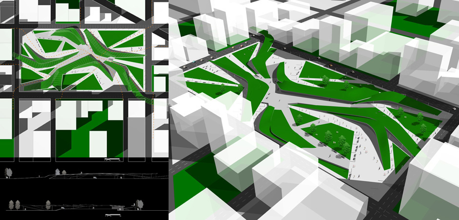 | The concept of collective, intended in the sense of membership of a community, is indissolubly linked to the concept of place. The place, as a sequence of empty and constructed spaces, defines lived experiences and social relations in the community. The creation of a focus point, that determines the identity and the urban texture of the growing Everyville, moves from a basic consideration of nature and perception of open space. The wish of creating a pole of services and social cohesion is proposed in this project, shaping the open space based on a dynamic, diaphanous and centripetal morphology, where hierarchies are determined by the empties, that defines ways and squares, not by the constructed. |