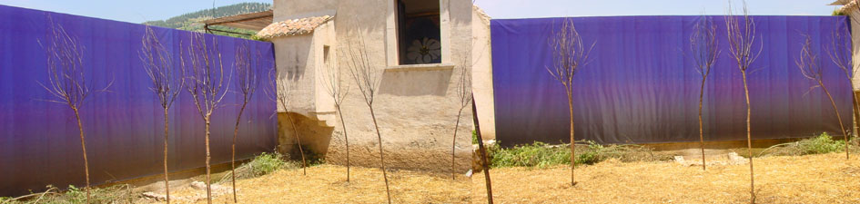 | il giardino é trattato come uno spazio bruciato, arso, omogeneamente ricoperto di nero, ad eccezione del muro di separazione dall’esterno che é rivestito da una tela stampata in toni digradanti dal nero all’azzurro. il tema é il rinnovamento, la capacitá rigeneratrice dei processi del paesaggio, la straordinaria forza con cui la vita riprende i suoi spazi quando ne é intenzionalmente o accidentalmente allontanata durante brevi momenti. il progetto é costruito attraverso il ricorso al materiale piú importante del lavoro sul paesaggio - il tempo: l’installazione é un processo che, parte dall’immagine desolante della terra bruciata fino ad arrivare allo spettacolo dell’appropriazione del terreno da parte del rivestimento erbaceo. |